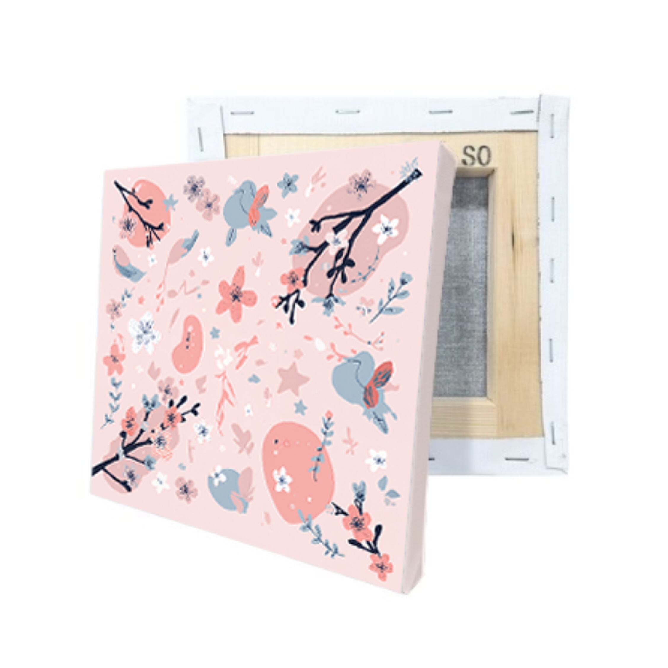 Spring Blossom Canvas Art|春の花と小鳥のカンバスアート(18cm角)